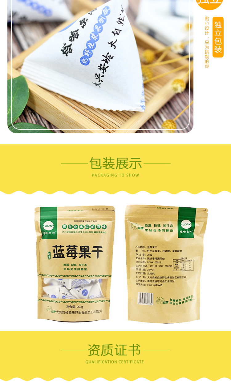 森林果品 > 果干制品 > 蓝莓干 > 塔哈尔河 蓝莓果干袋装 250g/袋