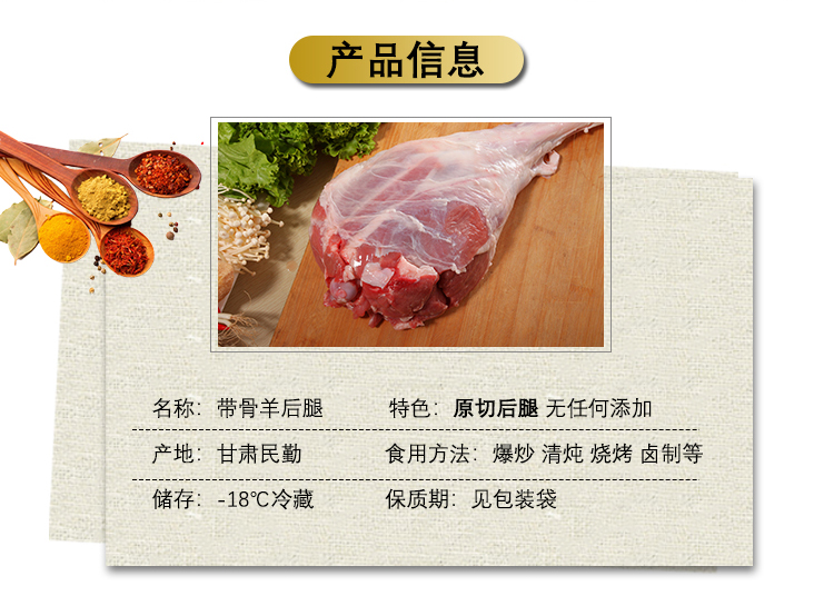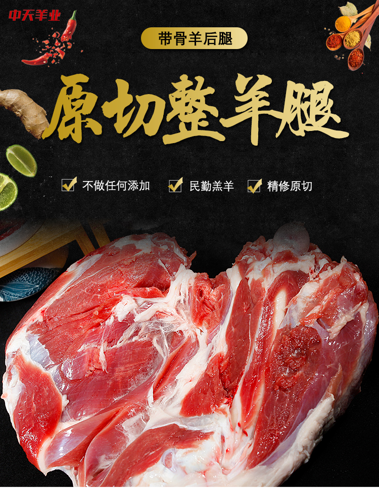 陇原中天 甘肃民勤 带骨羊后腿 2.3kg/条 原切 烧烤食材