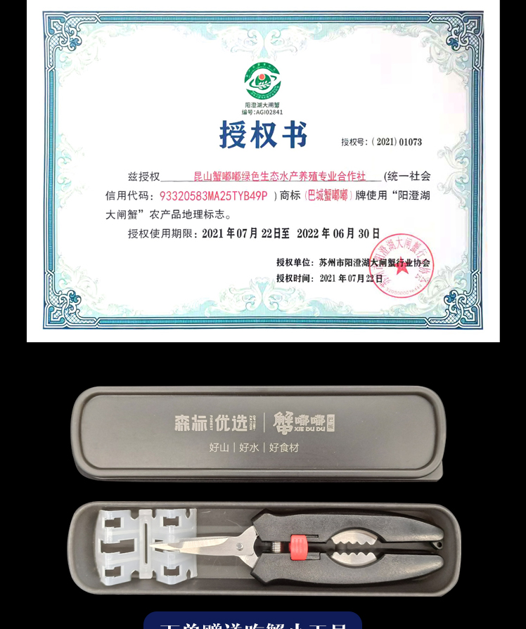 2021【礼券】 森标优选阳澄湖大闸蟹5对10只尊享款 公4.5两5只 母3.5两5只