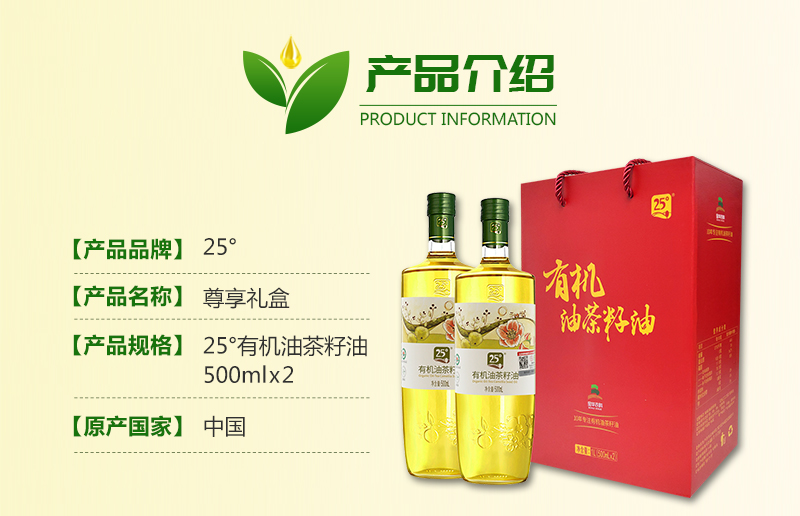 25度有机山茶油尊享500ml*2瓶/盒礼盒装