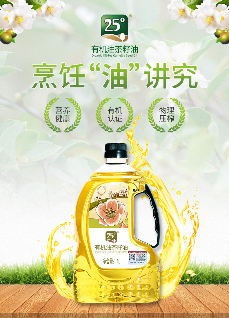 25度山茶油1.1L家庭食用健康一级压榨纯茶籽油