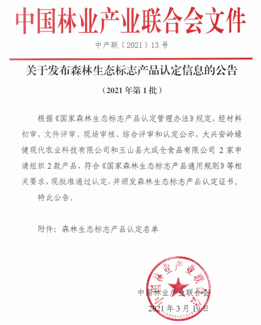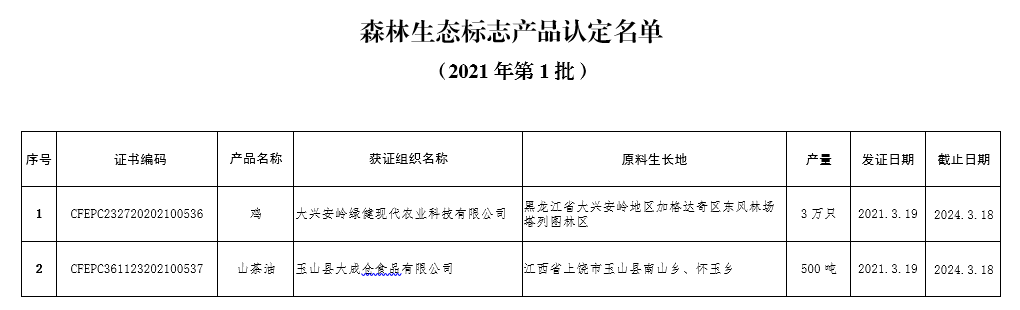 2021年第1批森林生态标志产品认定名单发布