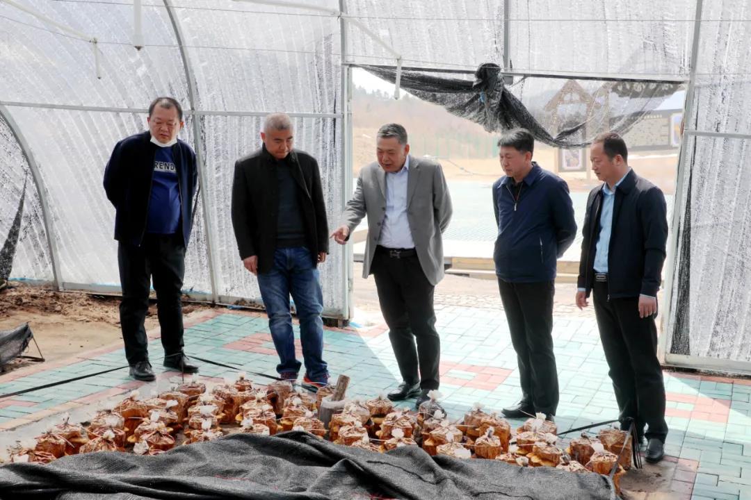 座谈会后,刘强一行来到八家子镇南沟村桑黄基地进行了参观。